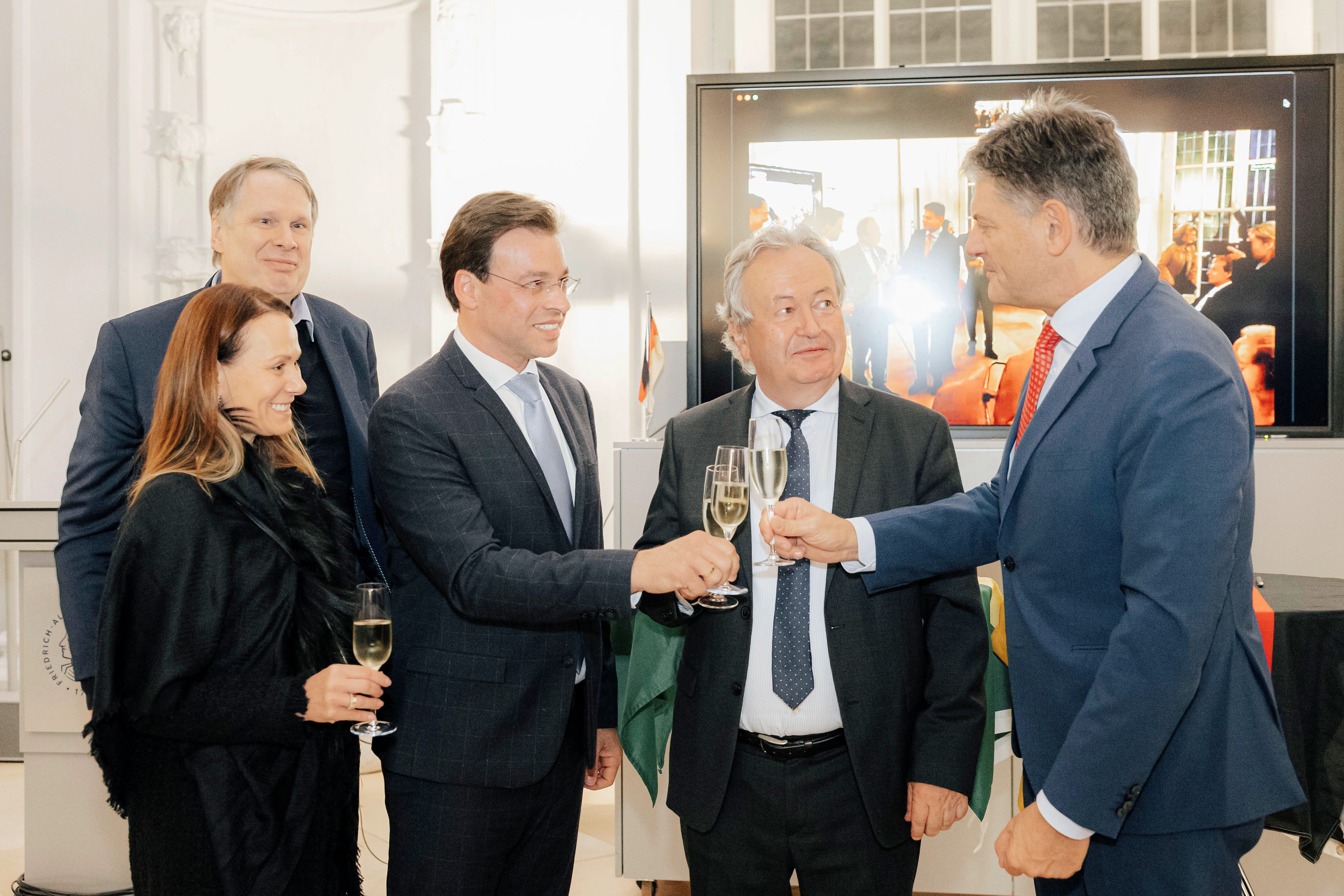 Im Anschluss an die Kuratoriumssitzung luden der Vorsitzende des Stiftungsvorstandes und Präsident der Friedrich-Alexander-Universität Erlangen-Nürnberg, Professor Dr.-Ing. Joachim Hornegger, und der Stellvertretende Vorstandsvorsitzende und Vertreter der Stifter, Rechtsanwalt Hans-Dieter Beuthan, zu einem festlichen Empfang in die Orangerie des Erlanger Schlosses. In seiner Ansprache beglückwünschte Professor Hornegger das neue Kuratoriumsmitglied zur seiner Wahl und wertete diese als wichtigen Impuls dafür, die mit der Stiftung geschaffene Brücke zwischen Deutschland und Brasilien weiter auszubauen.